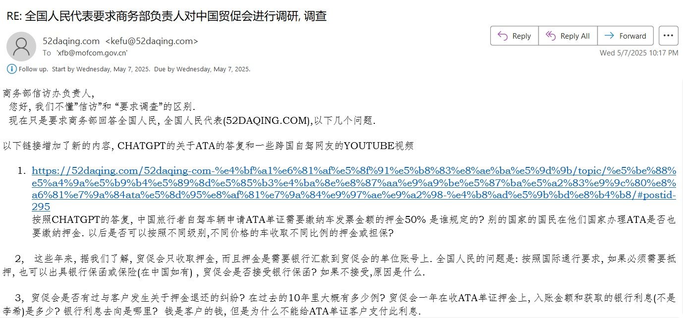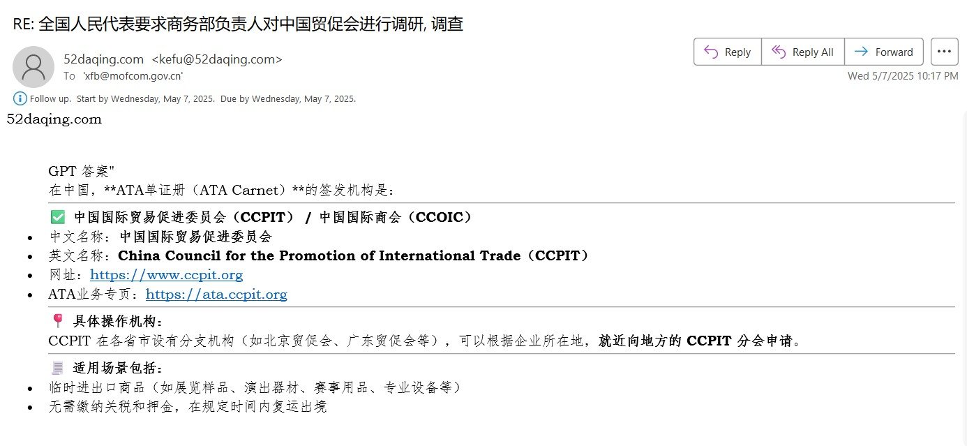 很多年前关于自驾出境需要的ATA单证的问题, 中国贸促会到底是什么组织